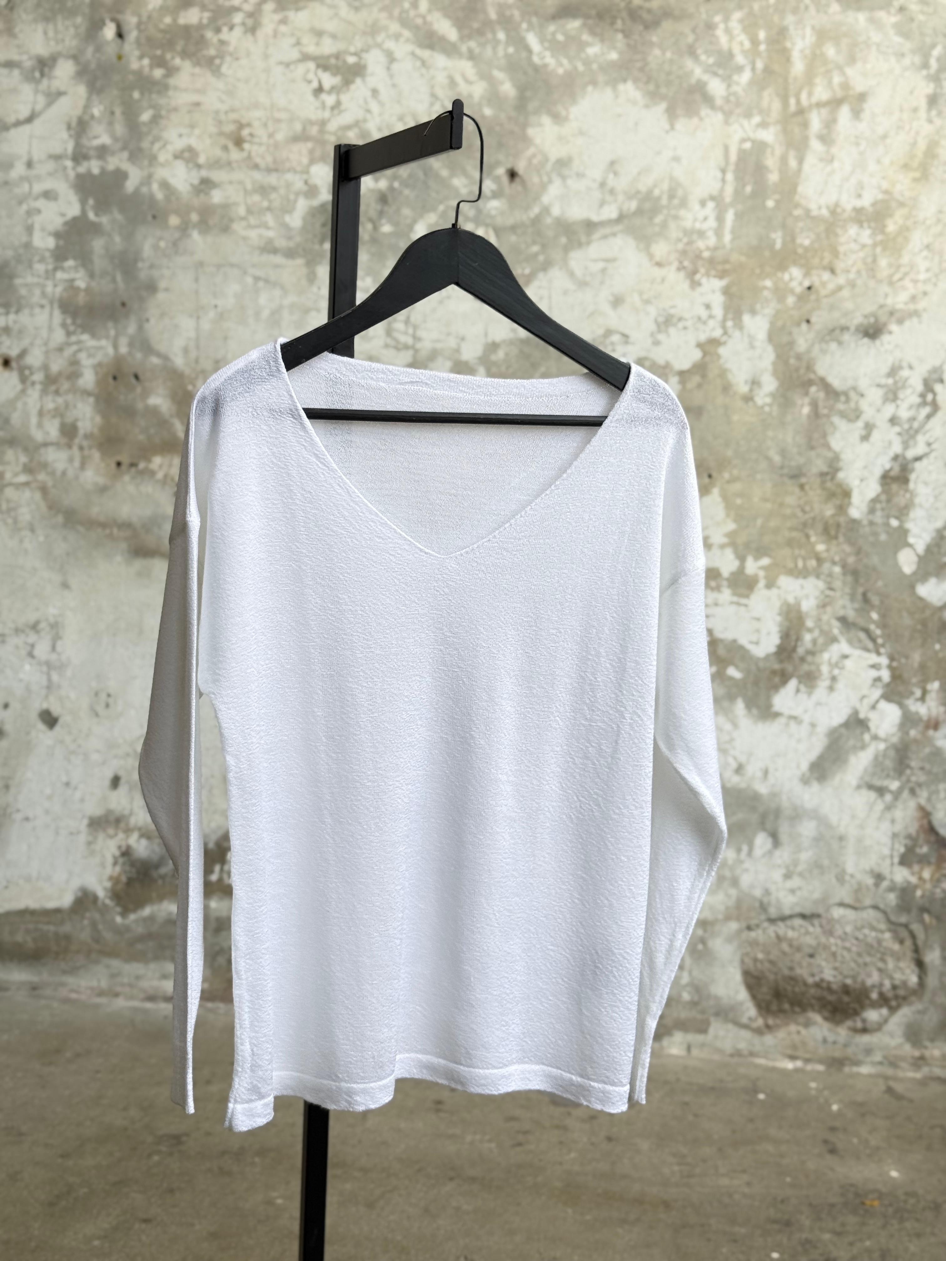 Basic Model V Yaka Merserize Kazak (Beyaz)