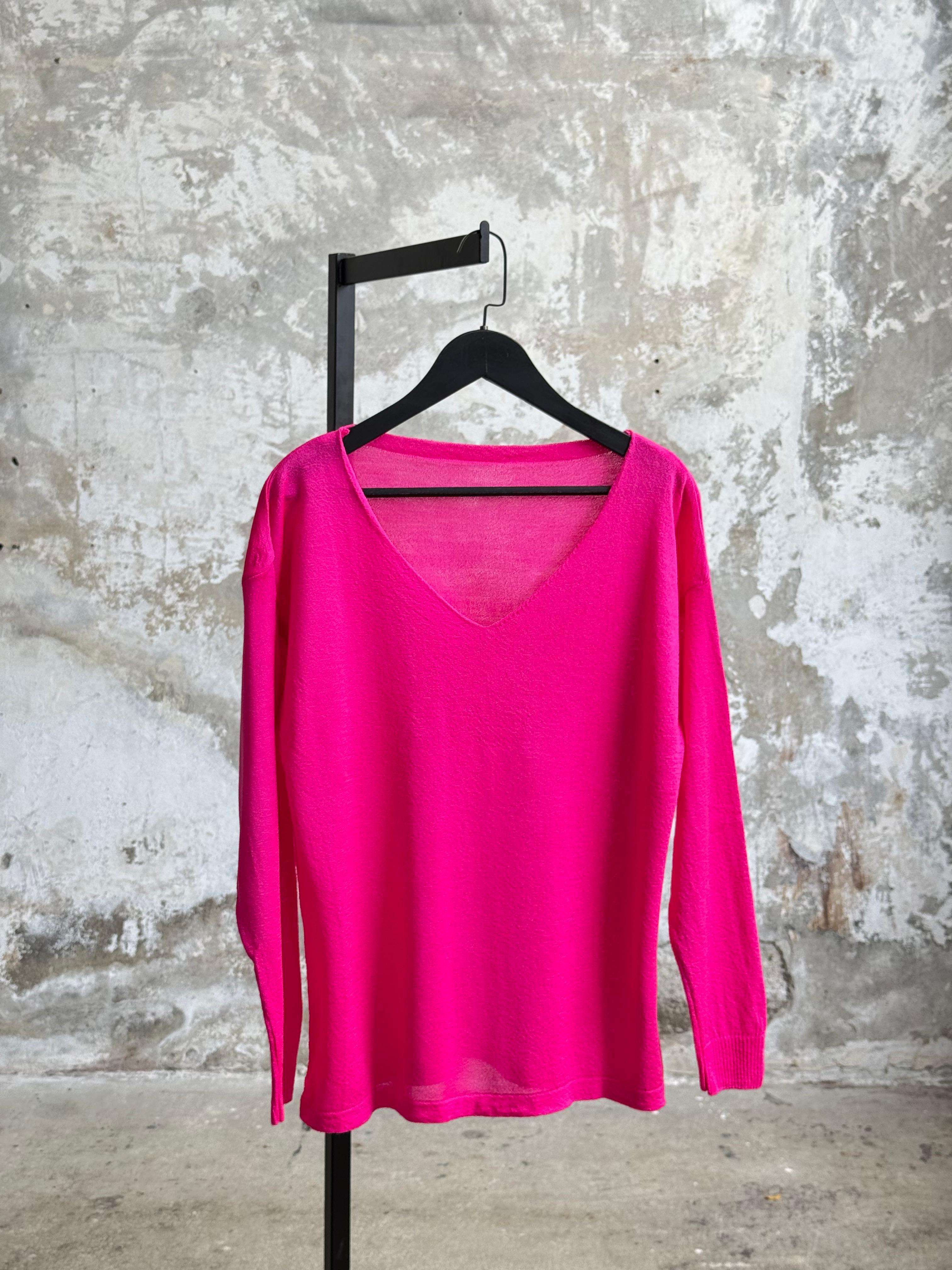 Basic Model V Yaka Merserize Kazak (Fuşya)
