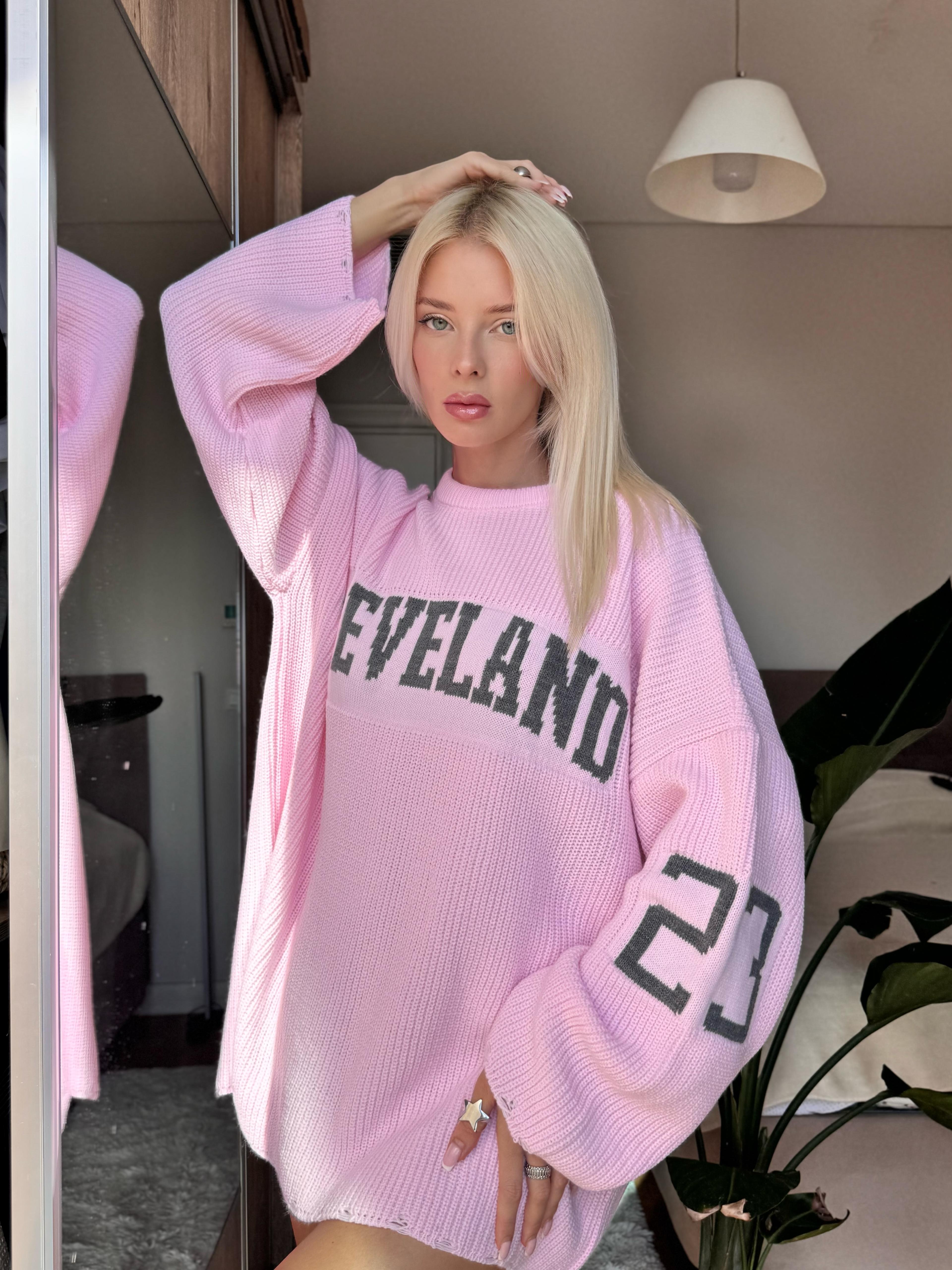 Bisiklet Yaka Yazı Baskı Detaylı Oversize Kazak (Şeker Pembesi)