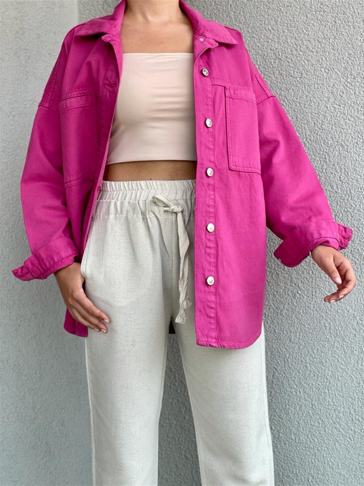 Cep Detaylı Ceket Gömlek (Fuşya)