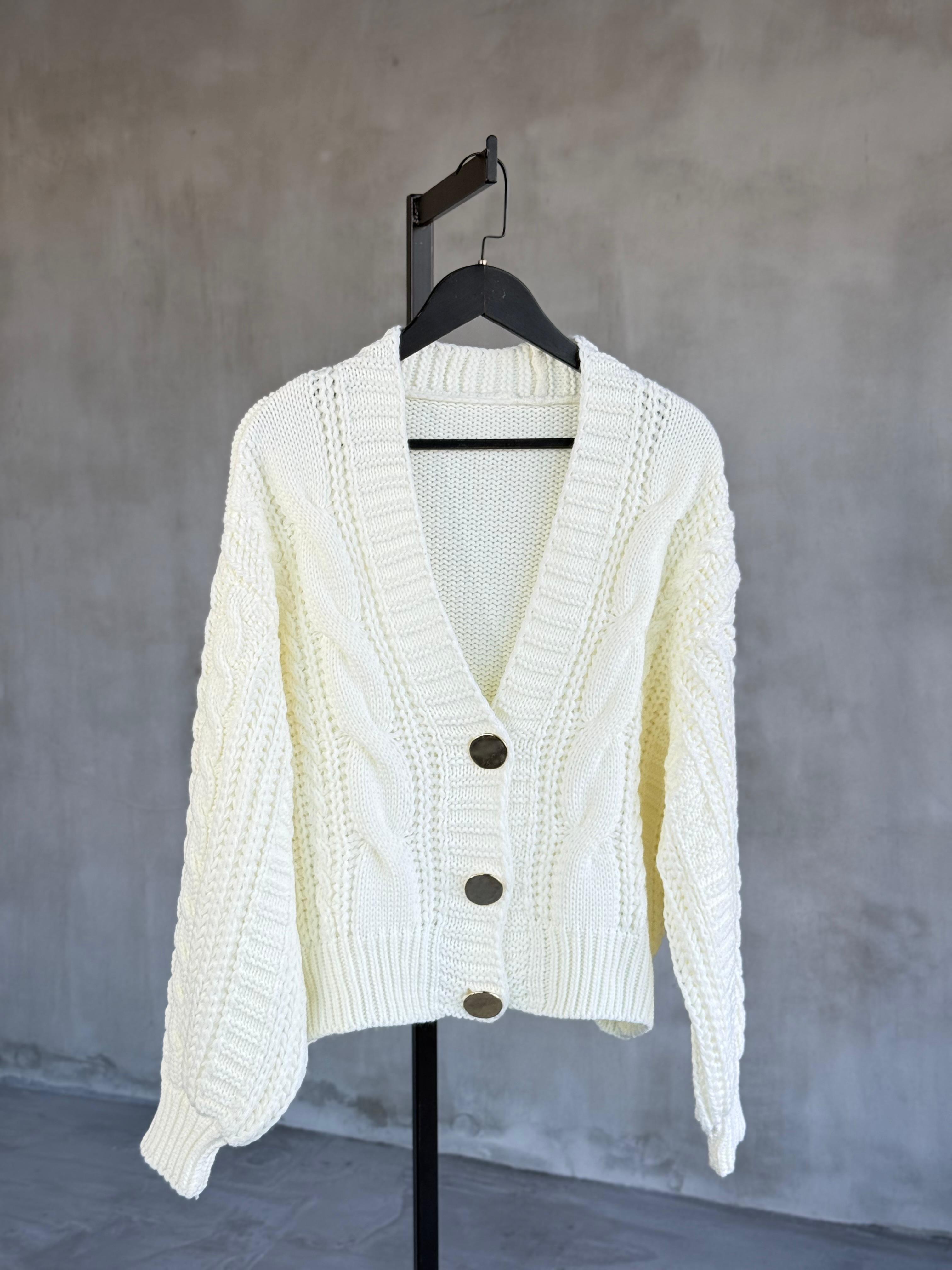 Gol Düğme Detaylı Çelik Örme Hırka (Ekru)