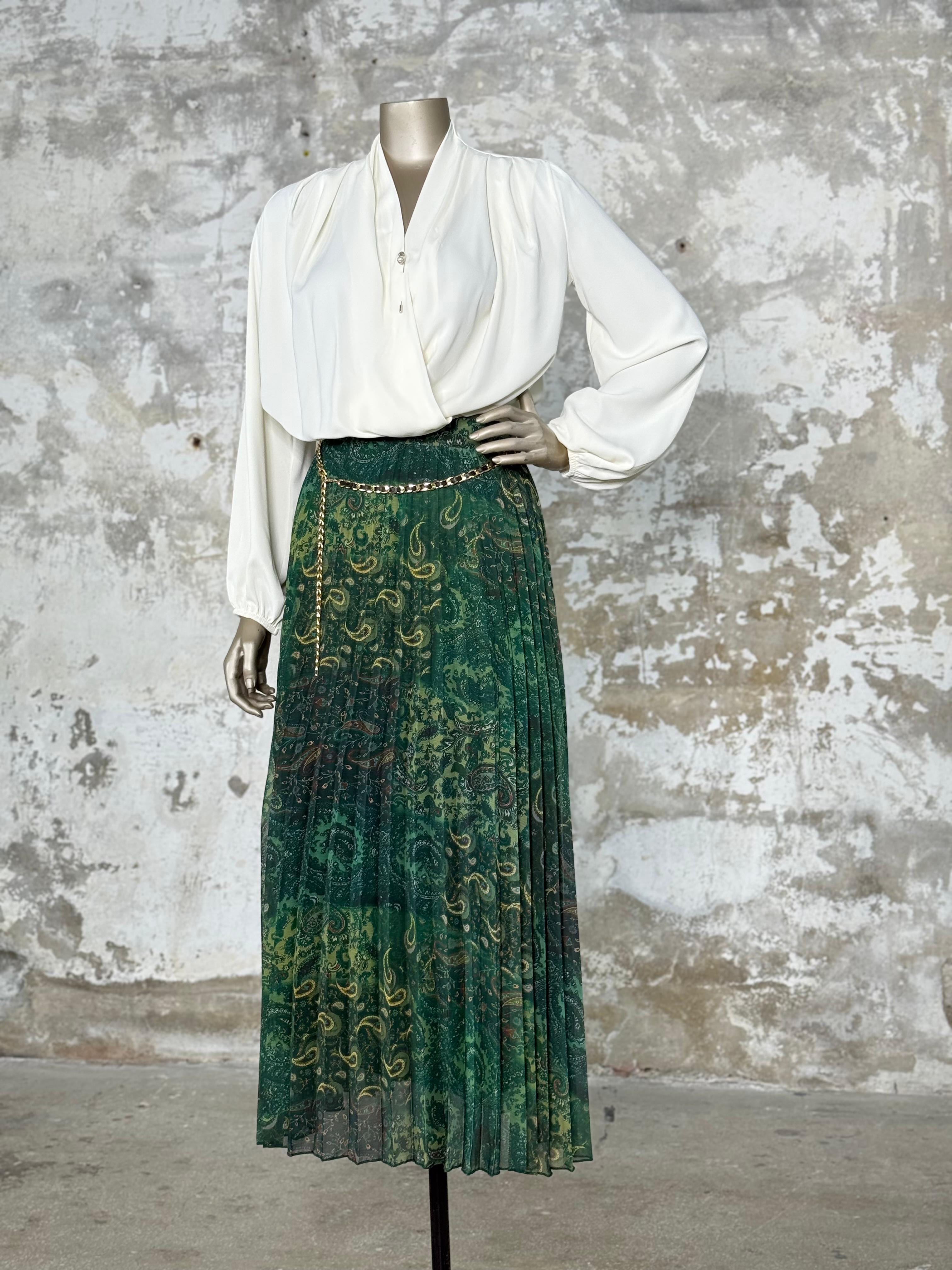 Gold Zincir Kemer Detaylı Pileli Tül Etek (Yeşil)