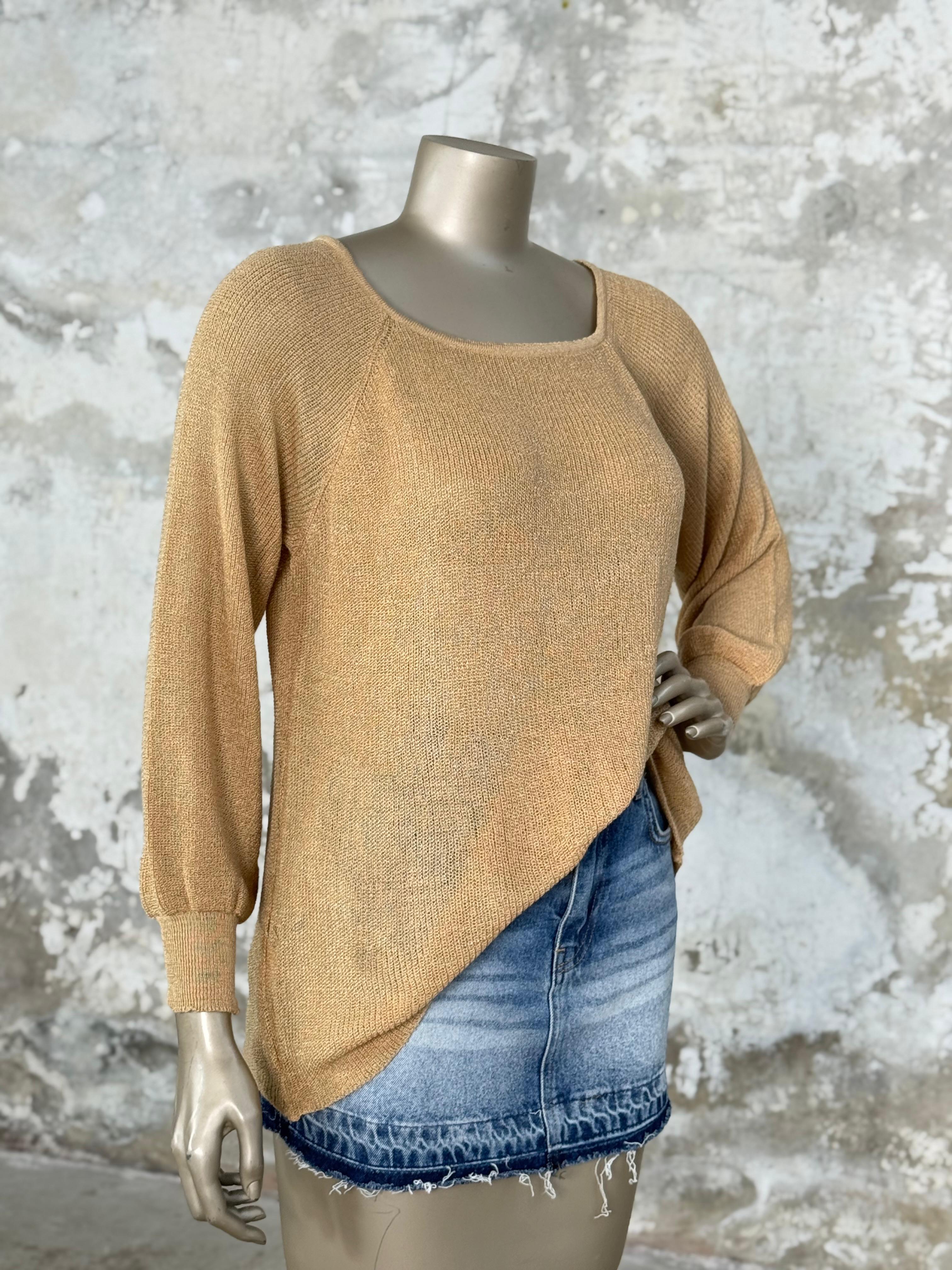 Kare Yaka Merserize Triko Örme Salaş Kazak (Camel)
