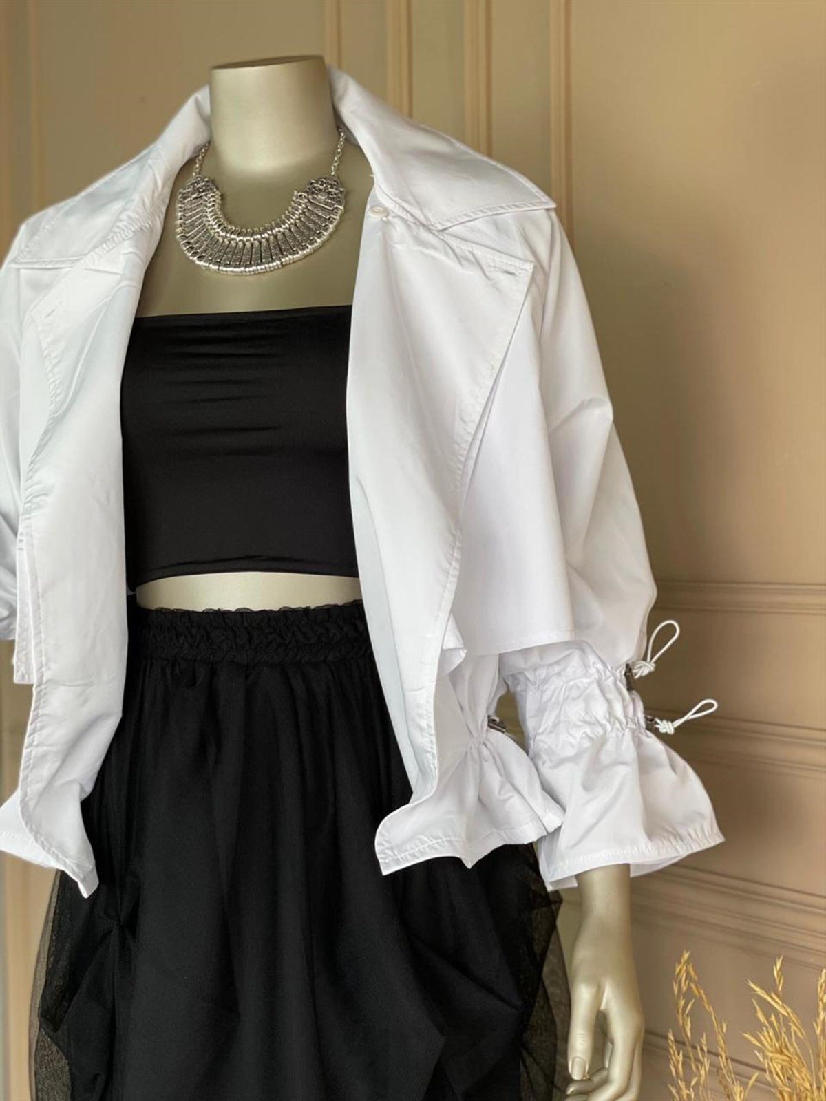 Paraşüt Kumaş Tasarım Ceket (BEYAZ)