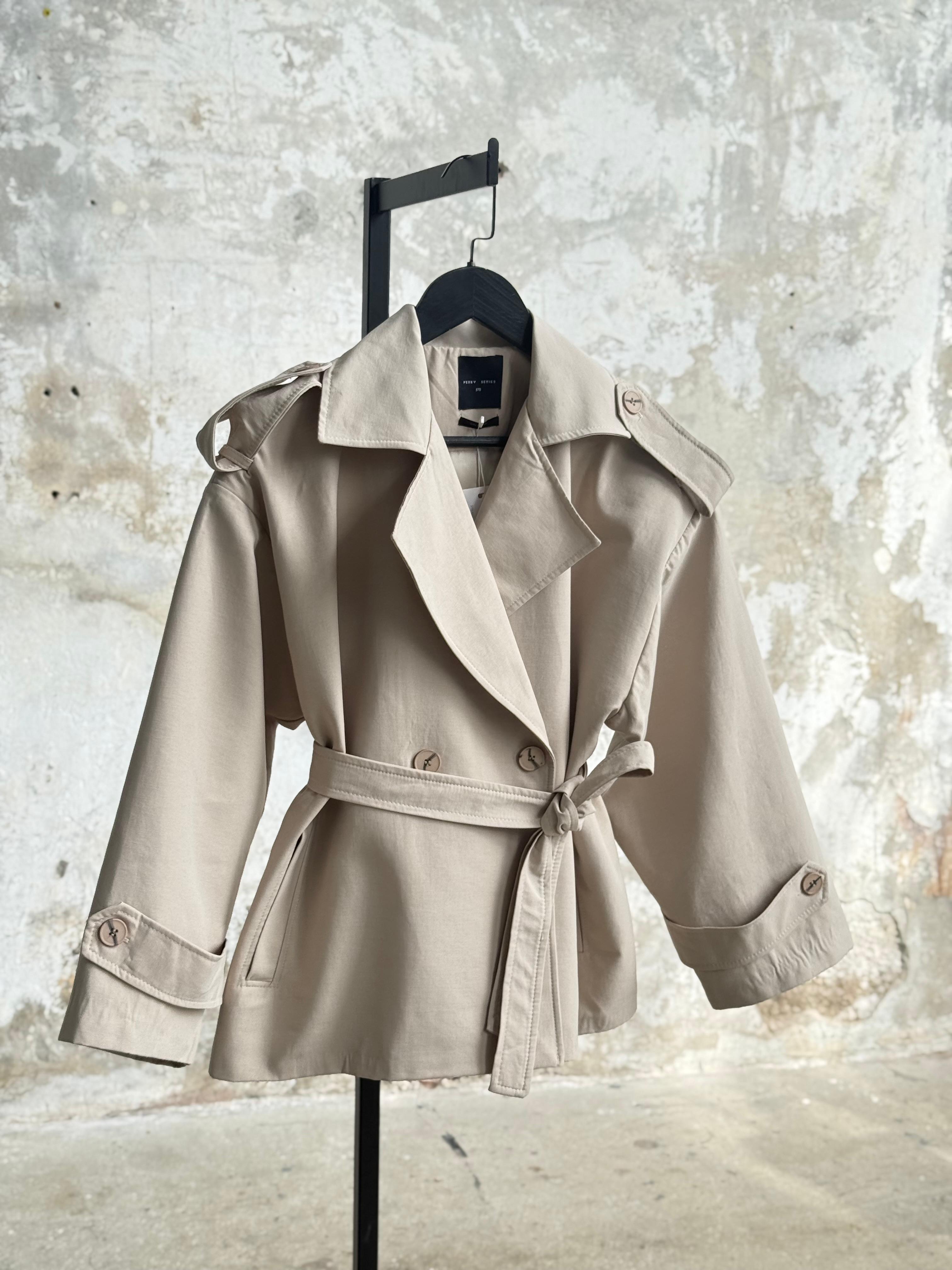 Premium Kalite Omuzu Kısa Apoletli Kısa Trençkot (Bej)