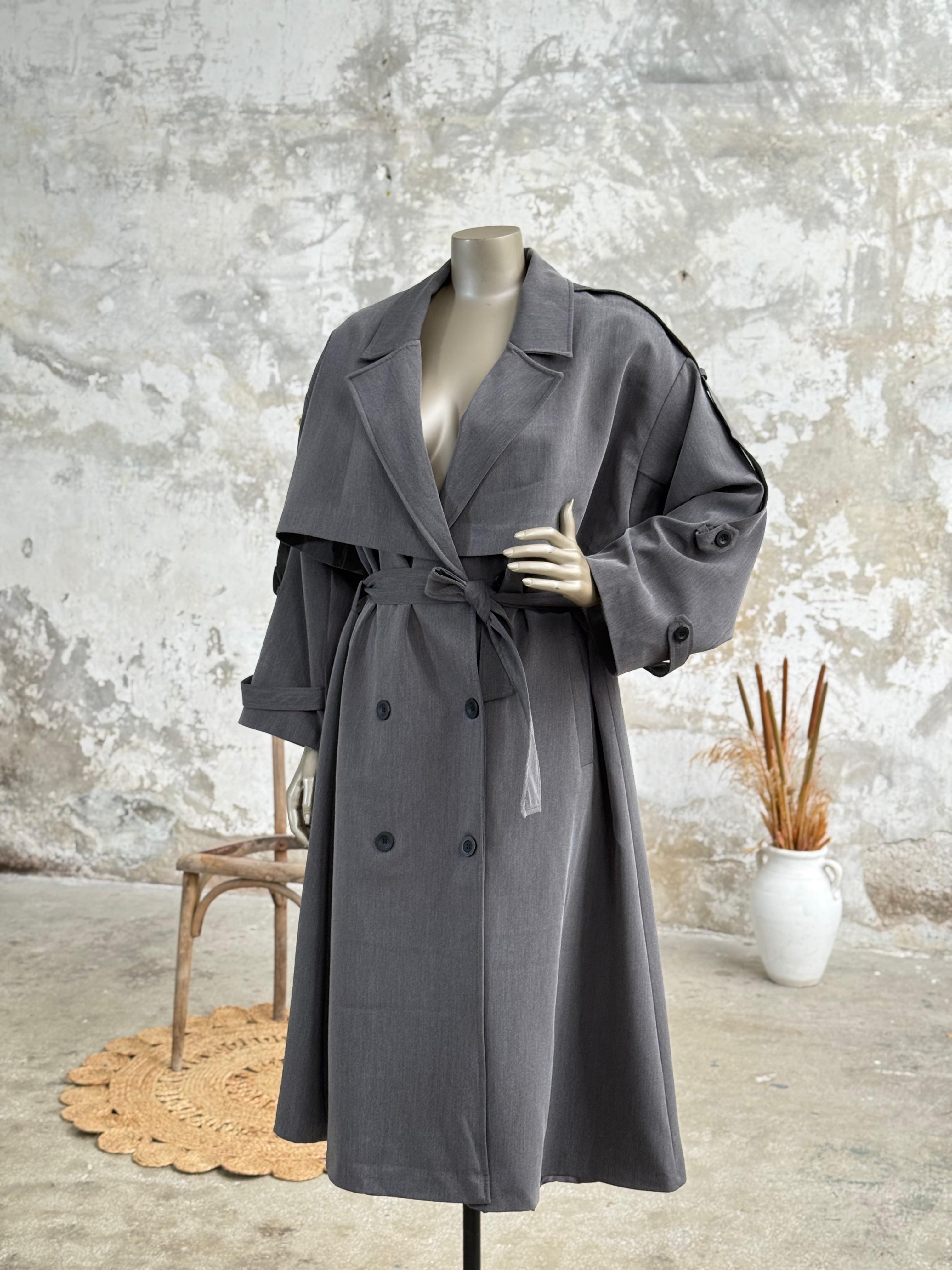 Premium Kalite Omuzu Uzun Apoletli Trençkot (Antrasit)