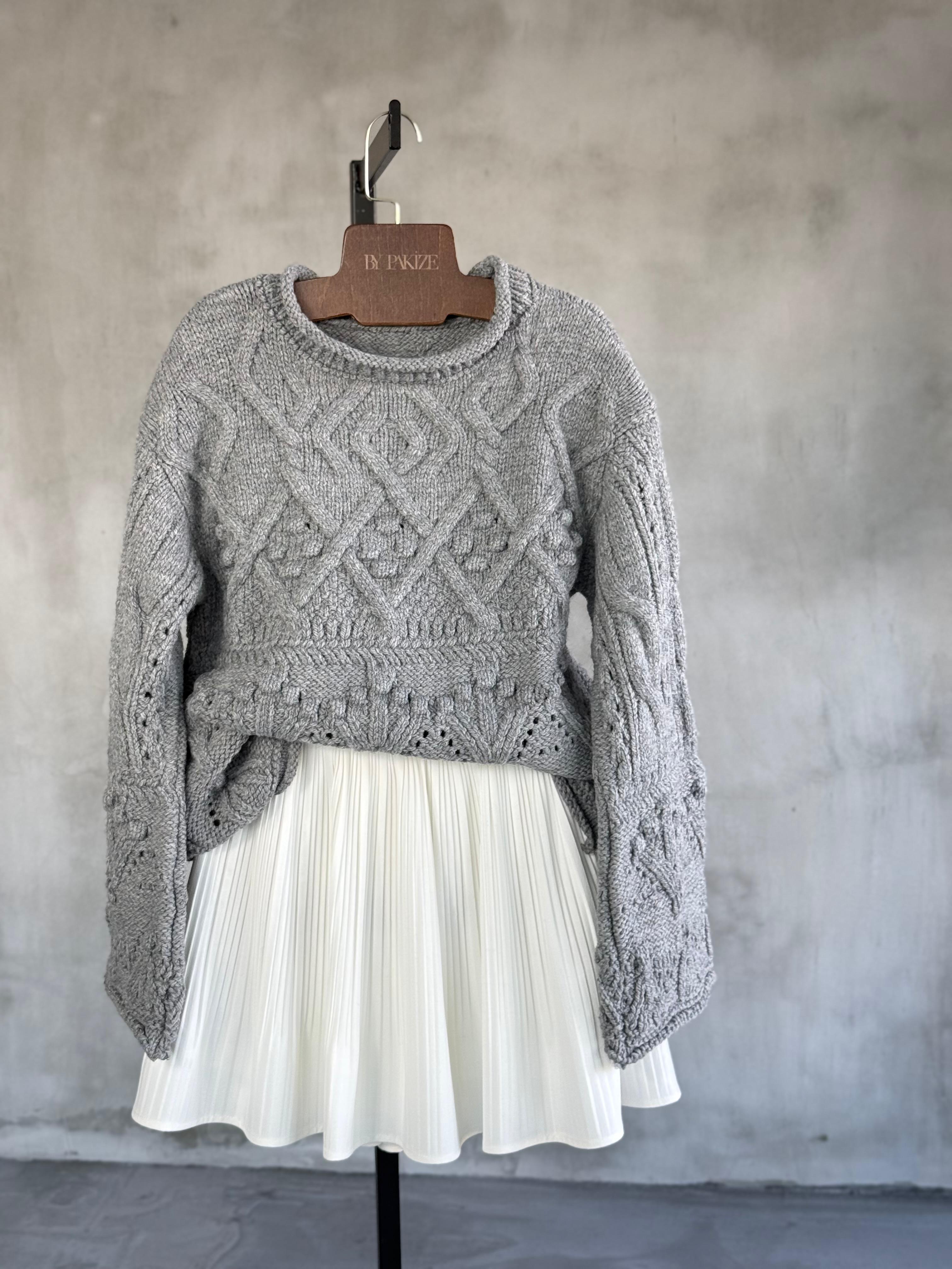 Kalın dokulu, kabartmalı örgü detaylarıyla hem sıcak tutar hem de tarzınıza zarif bir dokunuş katar.