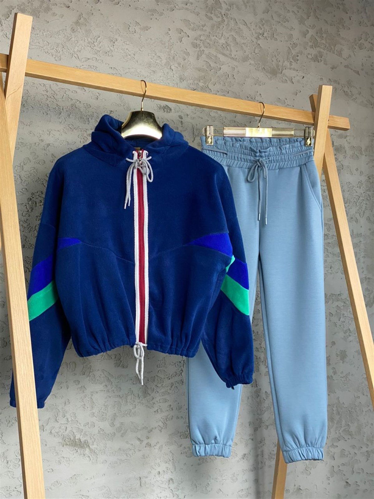 Tasarım Kapüşonlu Polar Ceket (Lacivert)