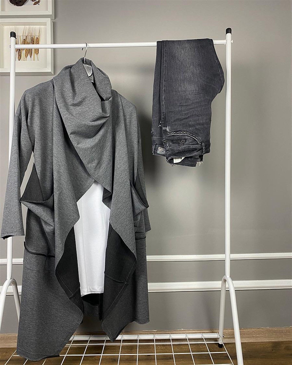 Tasarım Model Asimetrik Kesim Ceket (GRİ)